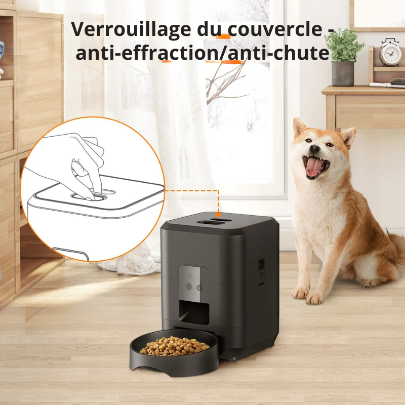 Ce distributeur automatique WiFi allie technologie de pointe et design sécurisé pour vous garantir une tranquillité d'esprit absolue et le bien-être de votre animal.