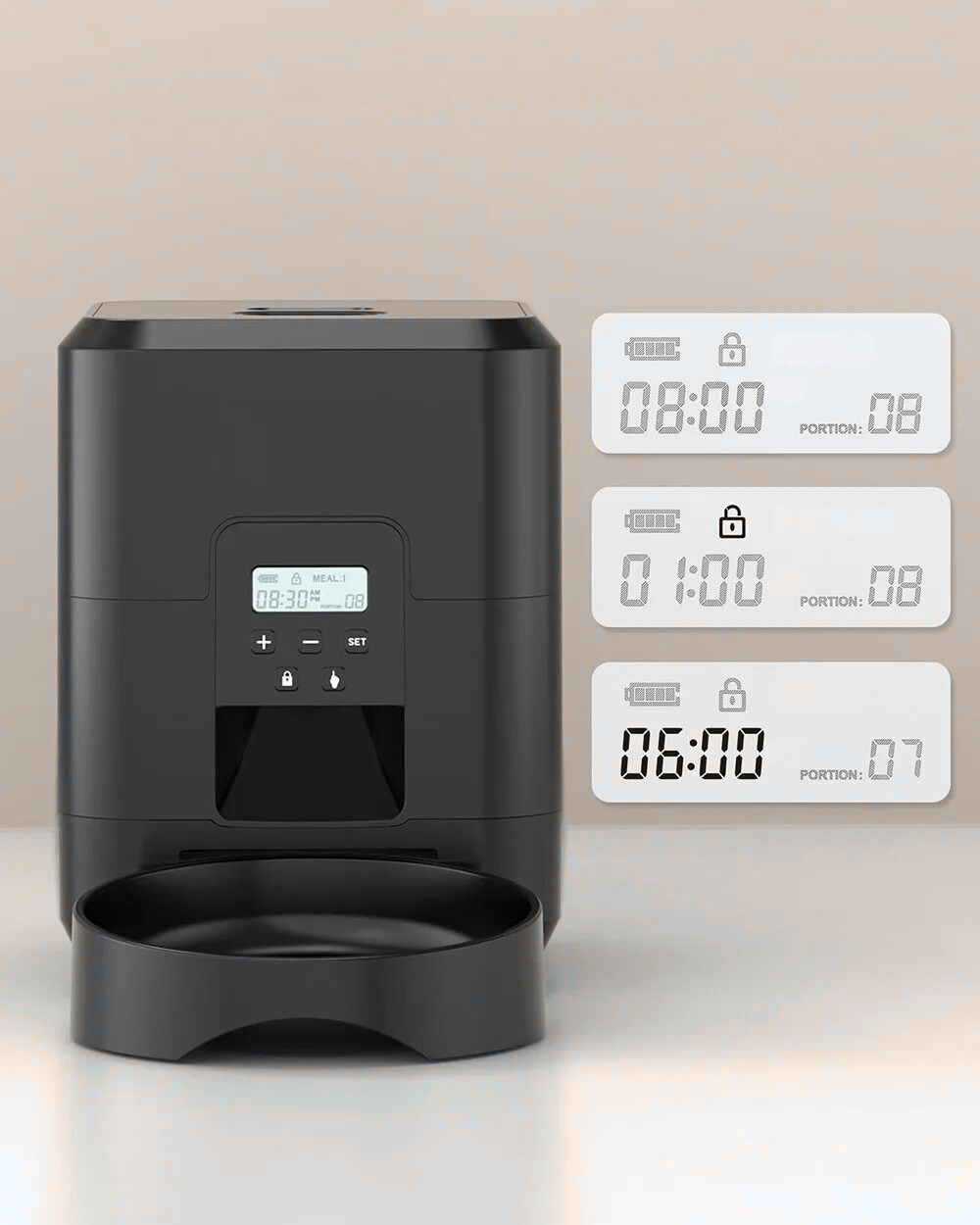 REPAS PROGRAMMÉS, PORTIONS MAÎTRISÉES, TRANQUILLITÉ ASSURÉE, MÊME EN VOTRE ABSENCE.